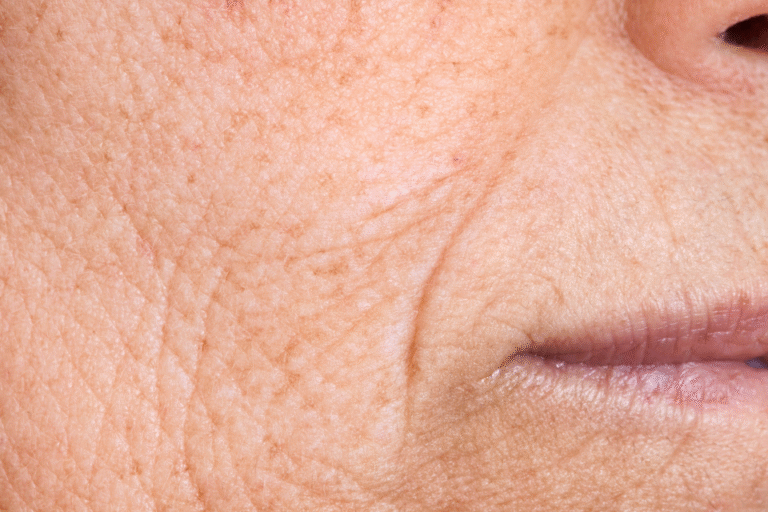 - Loss of elasticity and firmness, especially around the eyes, neck, or décolletage