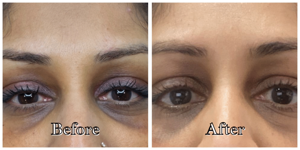 Mild redness, swelling, or bruising may occur and typically resolves within 24–48 hours. Downtime is minimal. Use gentle skincare and SPF; avoid exfoliants and makeup for 24 hours post-treatment.